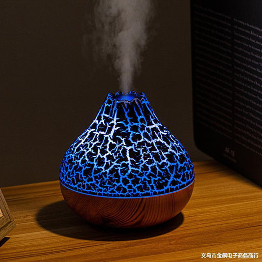 Volcano Humidifier with Wood Grain Finish – Silent Cool Mist Diffuser with 7-Color Ambient LED Light